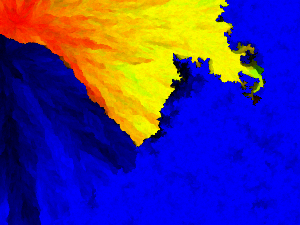 I wasn’t so much into maze solving so I started thinking what else could I do with these algorithms. One idea occurred to me – I could view an image as a graph where each pixel corresponds to a node and each node is linked to its neighboring pixels. Then I could try to color the picture pixel-by-pixel, using one of the two algorithms, not actually to search for anything but simply to go through the whole image. The idea was that when we first visit a pixel, we color it by calculating the average color of the neighboring pixels that have already been colored and by adding a small deviation to the average.
